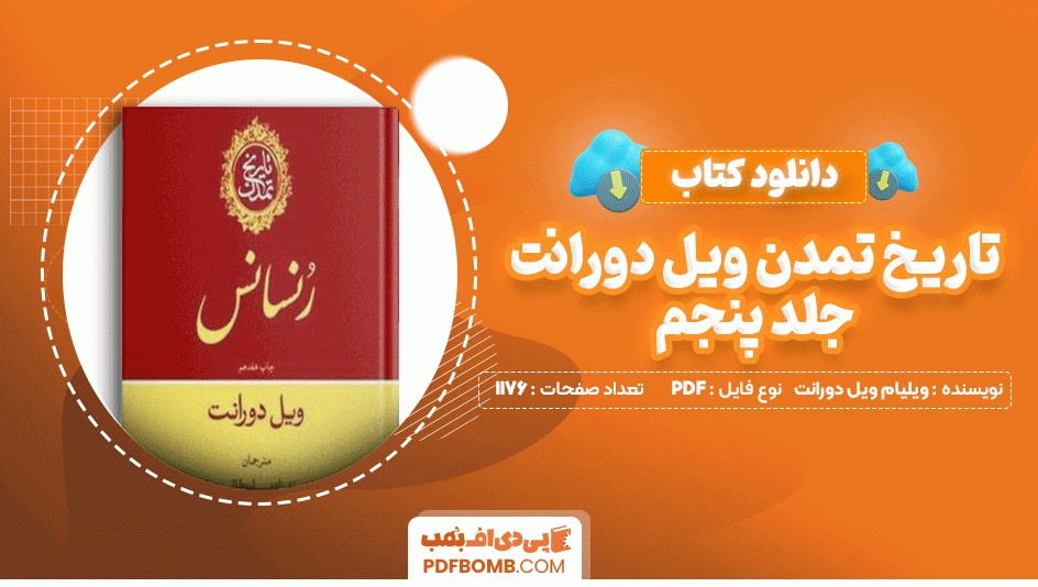 دانلود کتاب تاریخ تمدن ویل دورانت جلد پنجم ویلیام ویل دورانت 1176 صفحه PDF پی دی اف در سایت پی دی اف بمب در اختیار شما قرار گرفت. جلد پنجم “تاریخ تمدن” به تاریخ اروپا در دوران رنسانس و اصلاحات مذهبی میپردازد. دورانت به تحلیل تغییرات اجتماعی، اقتصادی و فرهنگی ناشی از این دوره میپردازد و تأثیرات آن بر جهان معاصر را بررسی میکند. در سایت پی دی اف بمب در این مطلب همراه باشید.