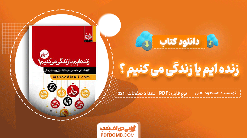 دانلود کتاب زنده ایم یا زندگی می کنیم؟ مسعود لعلی 221 صفحه PDF پی دی اف در سایت پی دی اف بمب در اختیار شما قرار گرفت . کتاب ” زندهایم یا زندگی می کنیم ؟ “ نوشته مسعود لعلی ، به موضوع بسیار مهمی می پردازد که در عنوان آن هم منعکس شده است : تفاوت بین ” زنده بودن ” و ” زندگی کردن ” در این کتاب ، نویسنده به بررسی این موضوع می پردازد که بسیاری از افراد تنها در حال گذران روزمرگیهای خود هستند ، بدون اینکه به طور واقعی زندگی کنند و از لحظات زندگی خود بهرهمند شوند . با سایت پی دی اف بمب در این مطلب همراه باشید .