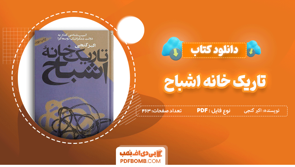 دانلود کتاب تاریک خانه اشباح اکبر گنجی 463 صفحه PDF پی دی اف در سایت پی دی اف بمب در اختیار شما قرار گرفت. ” تاریکخانه اشباح ” کتابی از اکبر گنجی ، روزنامهنگار و فعال سیاسی ایرانی ، است که در سال 1379 منتشر شد. این کتاب به بررسی و افشای جنایات و نقض حقوق بشر توسط حکومت جمهوری اسلامی ایران در دهههای پس از انقلاب می پردازد. گنجی در این اثر به خصوص به موضوع قتلهای زنجیرهای روشنفکران و دگراندیشان در دهه 1370 می پردازد. با سایت پی دی اف بمب در این مطلب همراه باشید.