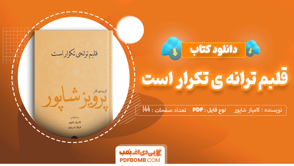دانلود کتاب قلبم ترانه ی تکرار است کامیار شاپور 144 صفحه PDF پی دی اف در سایت پی دی اف بمب در اختیار شما قرار گرفت . کتاب ” قلبم ترانهی تکرار است ” نوشته کامیار شاپور بهعنوان مجموعهای از نوشتهها و شعرهای او، بیانگر احساسات و تجربههای عمیق زندگی شخصی اوست . در مقدمه این کتاب ، کامیار شاپور به شفافیت و صداقت در بیان عواطف انسانی تأکید می کند و سعی دارد تا با زبانی ساده و در عین حال پر از ظرافتهای هنری ، خواننده را با خود به سفر درونیاش ببرد . با سایت پی دی اف بمب در این مطلب همراه باشید.