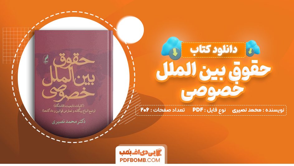 کتاب حقوق بین الملل خصوصی محمد نصیری 206 صفحه PDF پی دی اف در سایت پی دی اف بمب در اختیار شما قرار گرفت. کتاب “حقوق بینالملل خصوصی” نوشته محمد نصیری یکی از منابع مهم در زمینه حقوق بین الملل خصوصی است. این کتاب به بررسی اصول و قواعد حاکم بر روابط خصوصی بین المللی می پردازد.