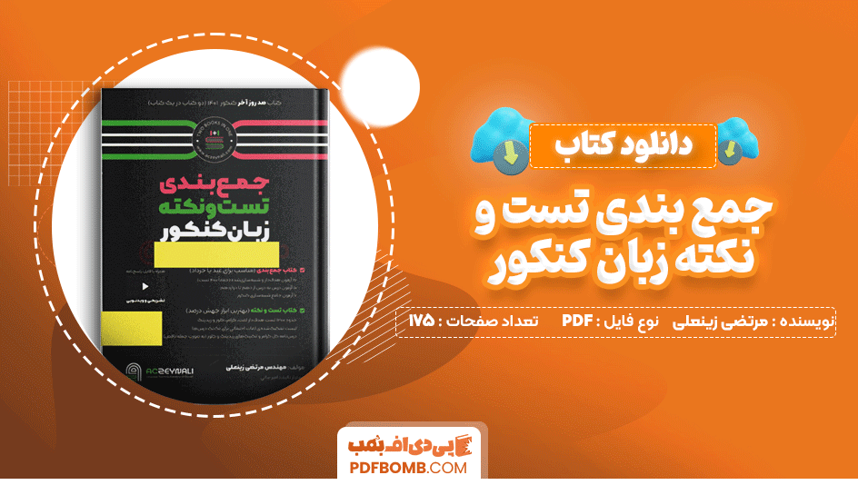 دانلود کتاب جمع بندی تست و نکته زبان کنکور مرتضی زینعلی 175 صفحه PDF پی دی اف در سایت پی دی اف بمب در اختیار شما قرار گرفت. کتاب “جمع بندی تست و نکته زبان کنکور” نوشته مرتضی زینعلی به عنوان یک منبع جامع برای مرور نهایی مطالب زبان انگلیسی طراحی شده است. این کتاب شامل نکات کلیدی، تستهای متنوع و راهکارهای مؤثر برای پاسخگویی به سوالات کنکور میباشد. هدف آن ارتقاء سطح آمادگی دانشآموزان برای امتحانات نهایی و کنکور است. با استفاده از این کتاب، دانشآموزان میتوانند نقاط ضعف خود را شناسایی و تقویت کنند. در سایت پی دی اف بمب در این مطلب همراه باشید.